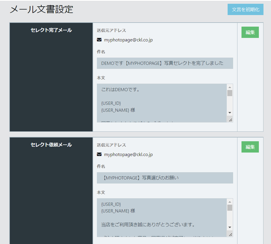 お客様が既にマイフォトページでお客様登録されて認証されている場合、「写真未選択」のお客様にセレクトをお願いするメールを送信できます。※メールアドレスの取得が必須となります。