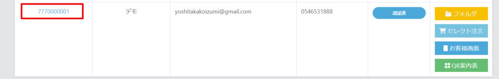 テストアカウントを作成後、お客様管理→お客様IDをクリック
