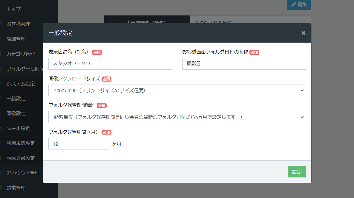 顧客により別の期間で設定したい場合は、写真アップロード画面で個別に設定も可能です。