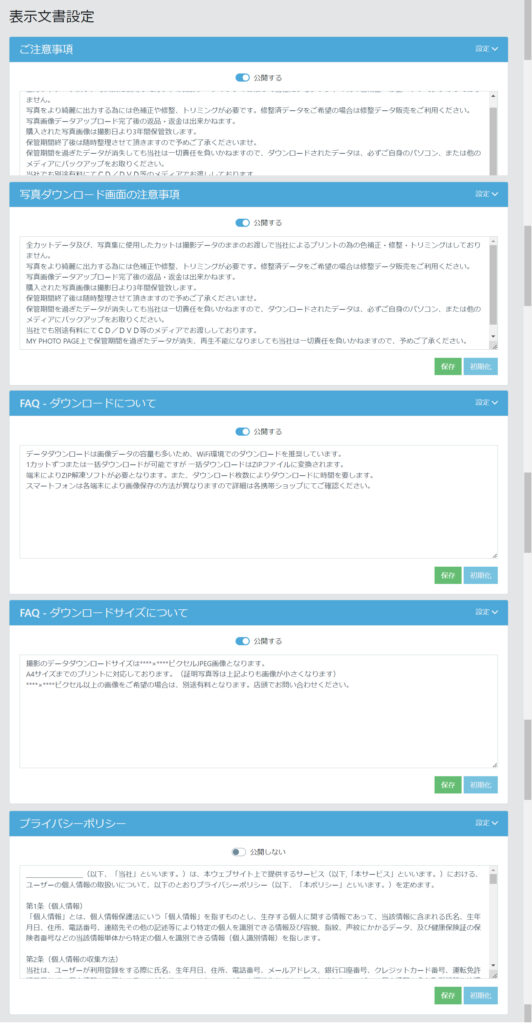ご注意事項お客様画面「ヘルプ」→「写真画像に関する注意事項 」の文言の変更が可能です。