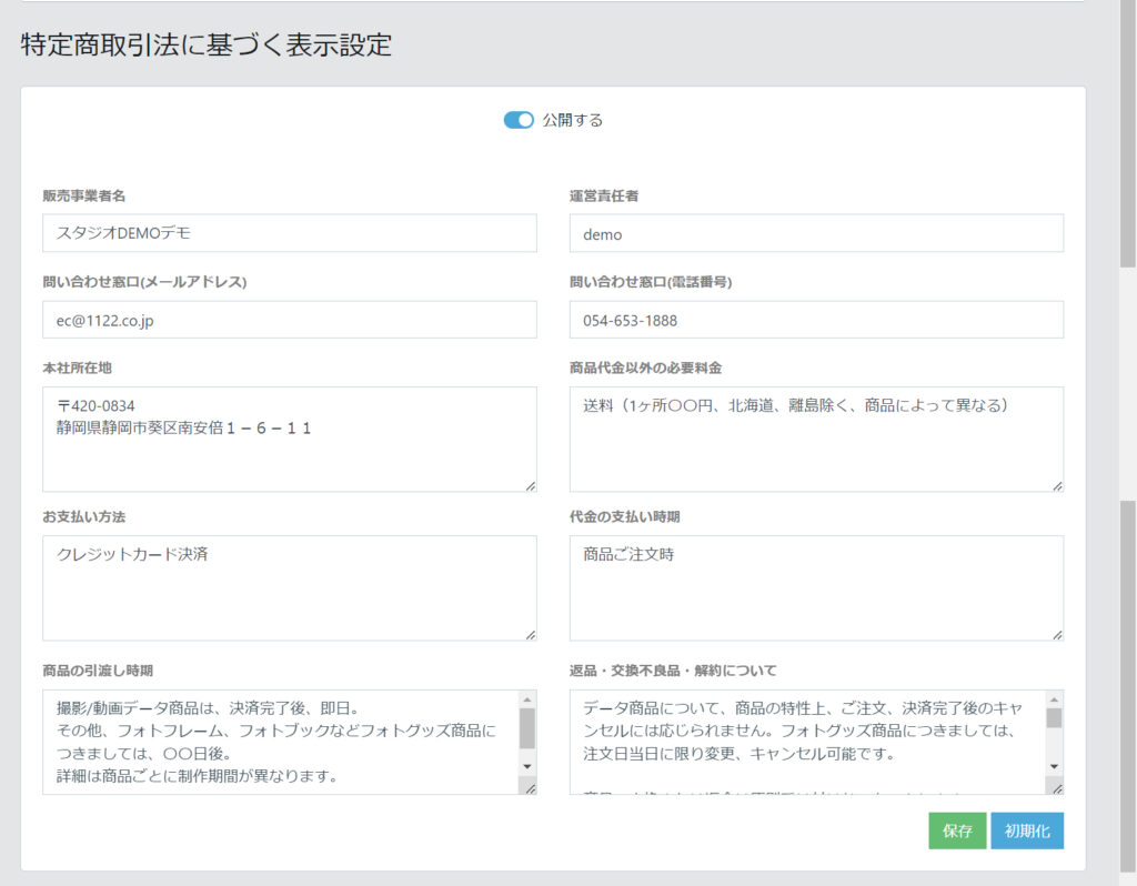 管理画面→ECメニュー→特定商取引設定