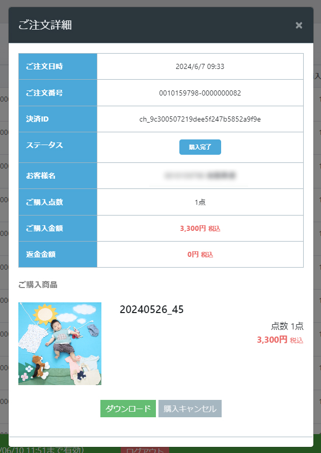 お客様が購入された商品の注文内容が確認できます。
