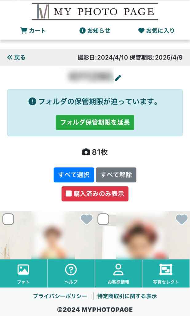 お客様に保管期間延長をマイフォトページ上で販売することが可能です。